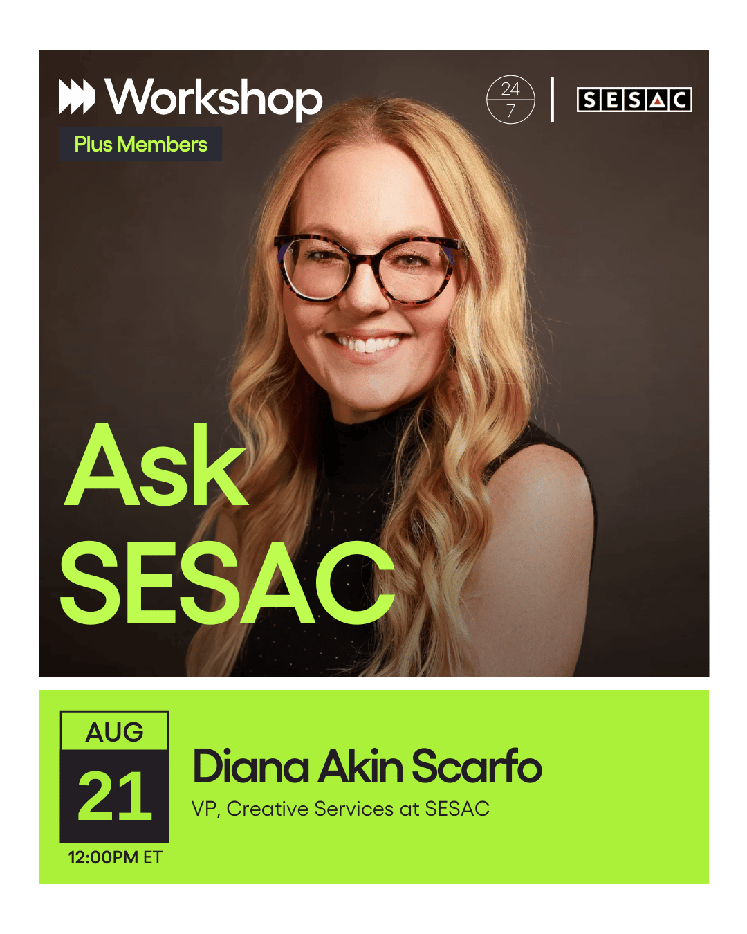 ASK SESAC August 21, 2025 from 12:00-1:00 PM EDT Get your questions answered and gain industry insight in this special Plus Workshop featuring Diana Akin Scarfo, Vice President of Creative Services at SESAC. This session is designed to demystify the world of performing rights organizations, publishing, and what it means to be affiliated with SESAC. Whether you're registered with a PRO or just exploring your options, Diana will offer clarity on how SESAC supports songwriters and how you can better position yourself in today’s music landscape. | ![]() |